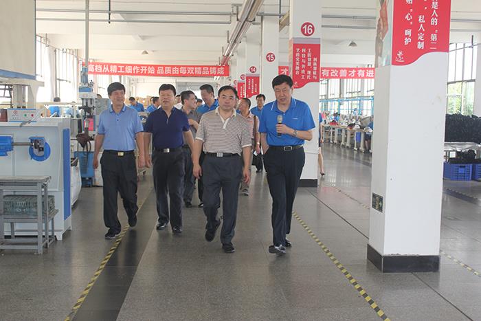 7月14日,中國人民解放軍軍事科學院系統工程研究院副院長周文華、軍需工程技術研究所所長繩以健在威海市政府副市長張偉的陪同下到我公司視察指導軍民融合工作。集團公司董事長柳富林、董事副總經理岳國威、總經理助理鞋業公司總經理李德政及皮具公司總經理竇立朝陪同。