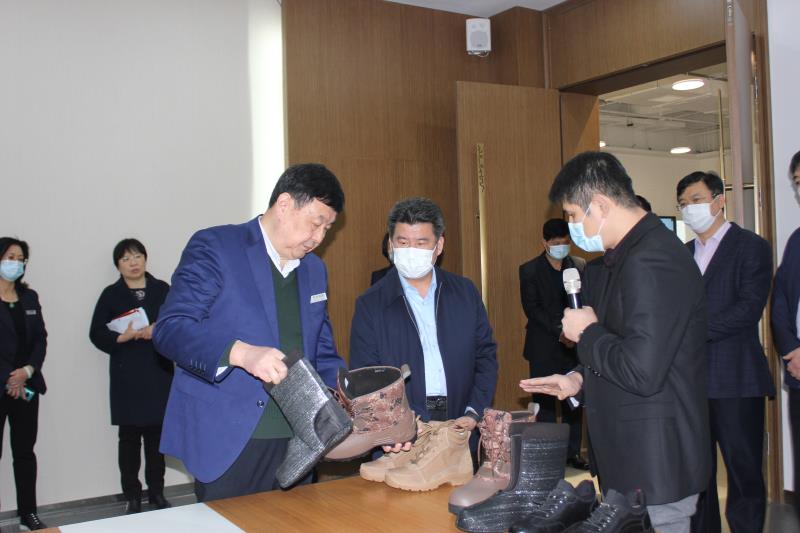 在膠東(威海)黨性教育基地教學點金猴展陳館,孫副市長認真聽取了公司發展歷程和企業文化建設情況的講解,對公司品牌建設、技術研發、軍民融合等方面取得的成績給予充分肯定。公司技術人員現場向孫副市長演示了今年為部隊研發并列裝的輕便防寒靴、極寒保暖靴、神舟十二號航天員返航著陸專用鞋以及已研發成功并即將列裝的單兵作戰背負系統,其展現的材料創新、工藝創新、功能創新,令孫副市長印象深刻并極力稱贊。