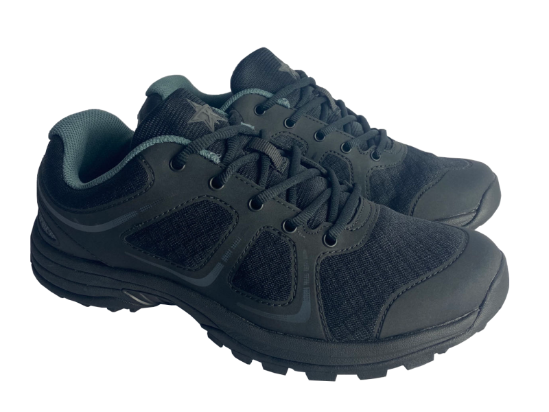 冬季工作鞋采取加強鞋底,具備一定的防穿刺功能。工作鞋樣式為低腰五眼系帶式,前幫由滌綸長絲鞋面布壓燙聚氨酯膠膜制成,后幫為熱塑性聚氨酯成型后包跟,鞋里為滌麻無紡布,大底由黑色發泡EVA/硬質TPU/密實橡膠組成,幫底采用膠粘工藝,冬季工作鞋設置網加絨工藝。