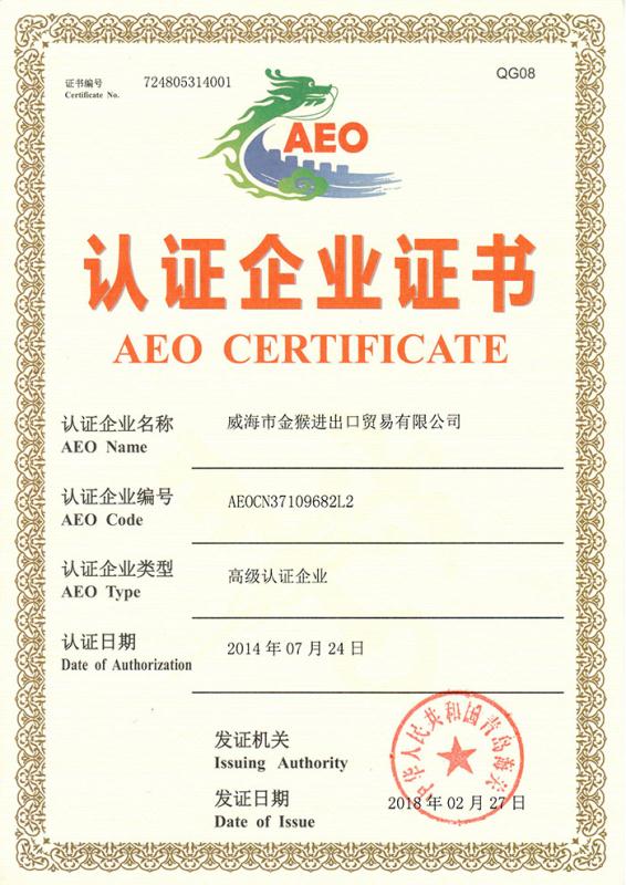 日前,金猴進出口貿易公司正式通過了海關AEO(即Authorized Economic Operator,簡稱“經認證經營者”)高級認證,成為獲得國際貿易最高等級“信用通行證”的企業。